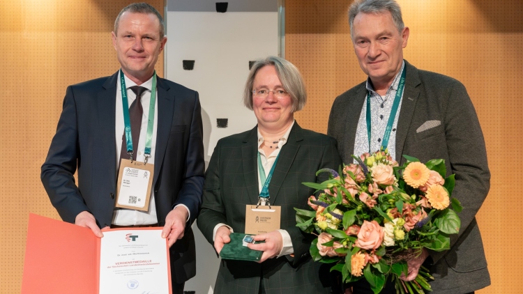 Die Sächsische Landestierärztekammer (SLTK) hat Dr. Ilka Emmerich mit ihrer Verdienstmedaille ausgezeichnet. Mit dieser Ehrung würdigt die SLTK ihre herausragenden Verdienste um das Ansehen und die Weiterentwicklung des tierärztlichen Berufsstandes. Die feierliche Übergabe erfolgte traditionsgemäß im Rahmen des Kongresses durch Dr. Uwe Hörügel, Präsident der SLTK.