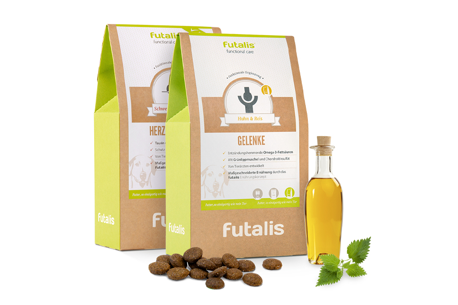 Functional care umfasst funktionale Zusätze, die gezielt Bereiche wie Gelenke, Zähne, Herz & Kreislauf sowie Haut & Fell unterstützen. Die Ergänzungen werden individuell in die Trockenfutterration integriert und in Menge sowie Zusammensetzung auf den jeweiligen Hund abgestimmt. Alternativ können Halter*innen sie auch separat als funktionale Snacks einsetzen.
