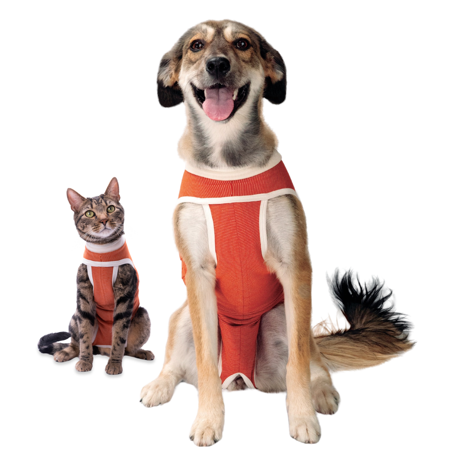 CopperBody®, der postoperative Erholungsanzug, den Haustiere gerne tragen, bietet eine ideale Barriere gegen Kontamination und Selbstverletzung. In den meisten Fällen kann er den klassischen Trichter (Halskragen) ersetzen und ermöglicht dem Patienten freie Bewegung sowie ein natürliches Verhalten während der gesamten Genesungsphase.