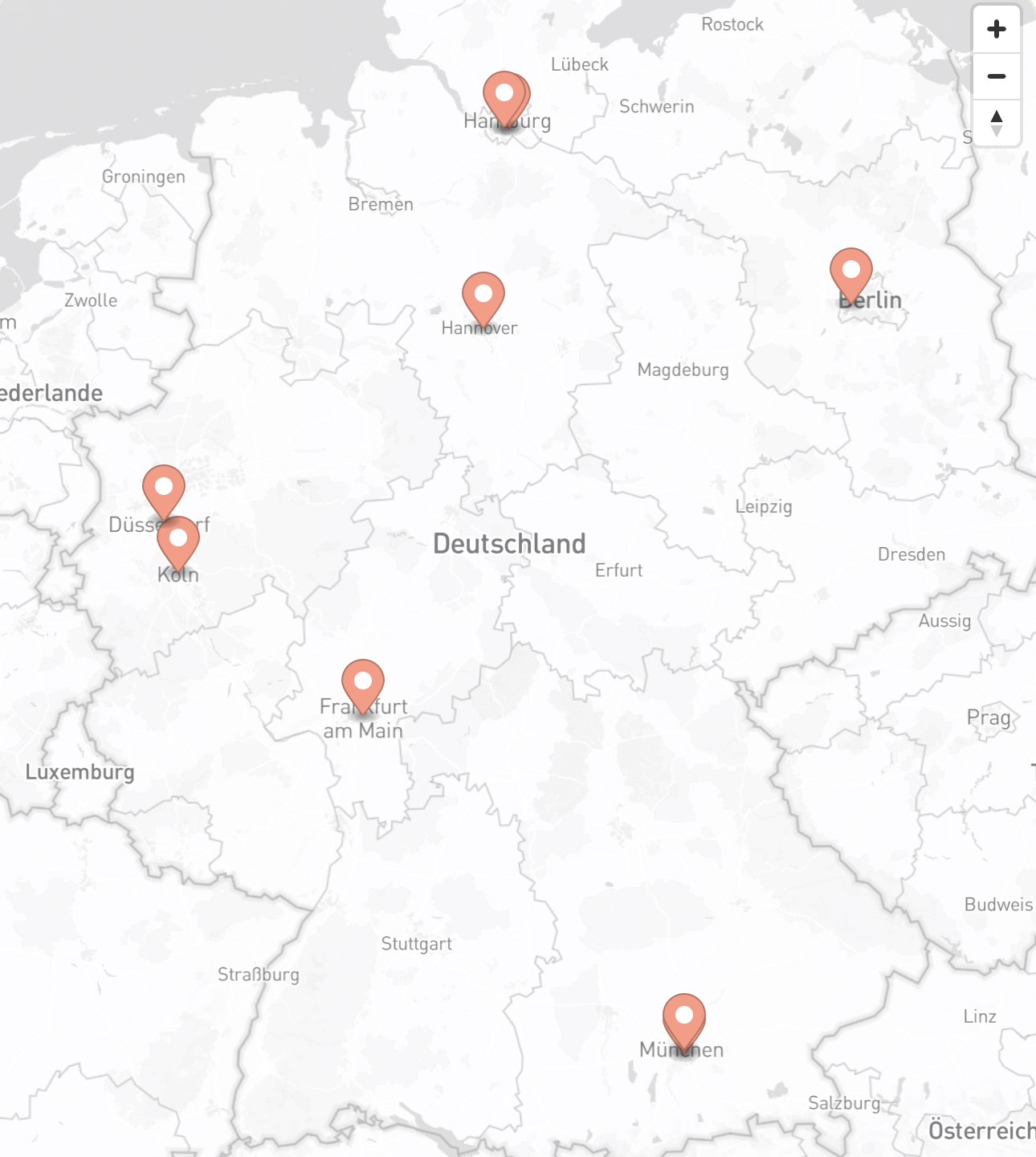 Lerne unsere Wohlfühl-Praxen in München (zwei Standorte), Frankfurt, Köln, Düsseldorf, Berlin, Hamburg und Hannover kennen.